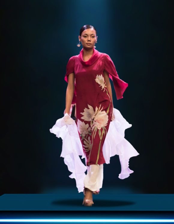 Thoughtfully designed soft and light chiffon handpainted dress, an absolute delight for every occasion.